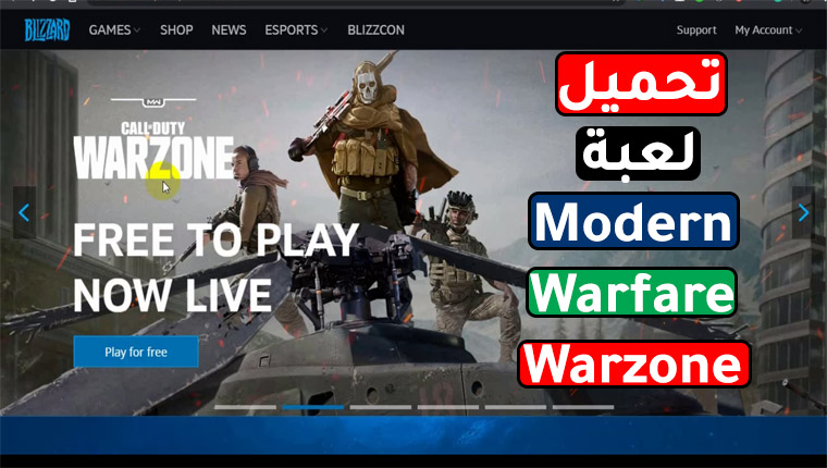 فى البدايه توجه الى متجر متجر Battle.net وانشئ حساب مجانى عليه، ثم ادخل على الرابط الموجود فى أسفل هذا الموضوع والذى سيحولك إلى صفحة تحميل لعبة Call of duty warzone واضغط على كلمة Play for free.